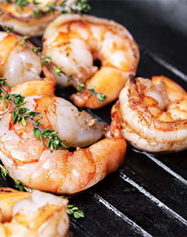 Grilled shrimp skewer that are seared to perfection and served with rice or fries.